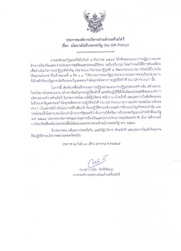 СͧúǹӺ ͧ ºѺͧѭ (No Gift Policy)
